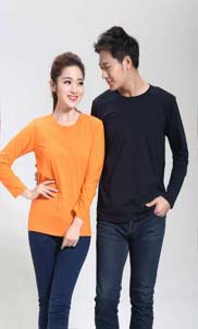 - 春季長(zhǎng)袖打底圓領(lǐng)純棉21支精梳紗200克男女通款T恤衫